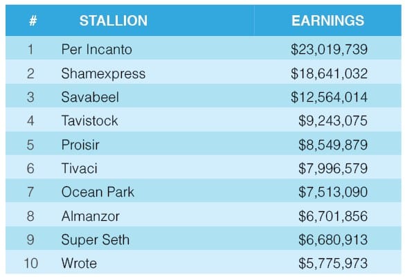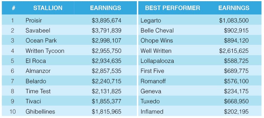 Leading Sires by earnings in New Zealand.