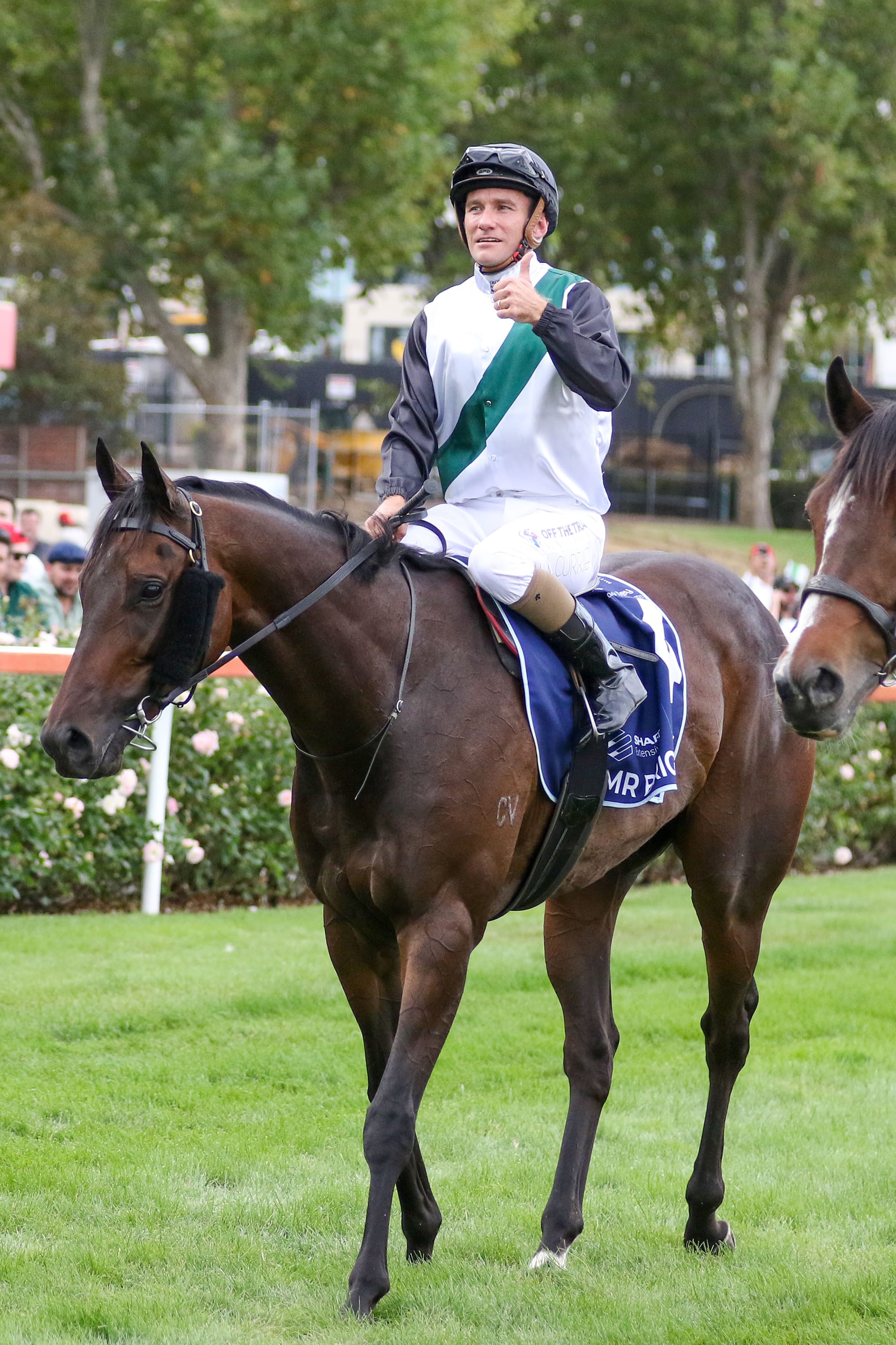 Ridden by top-class jockey Luke Currie, who jetted in from Hong Kong to take the mount, Mr Brightside sat midfield for much of the contest and tracked I’m Thunderstruck (NZ) (Shocking) into the race.