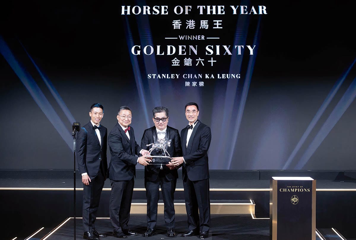 Golden Sixty’s (Medaglia d'Oro) record-breaking performance during the 2022/23 racing season saw Hong Kong’s champion earn the Horse of the Year title for a third consecutive year at a special presentation in Hong Kong on Friday night.